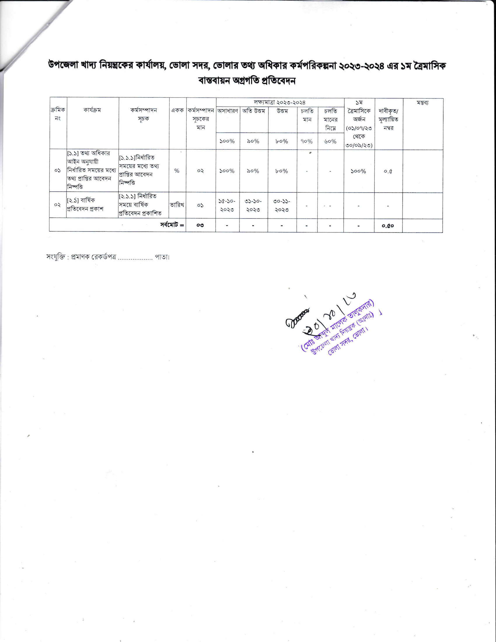 ২০২৩-২৪ এর ১ম ত্রৈমাসিক মাসিক অগ্রগতি প্রতিবেদন